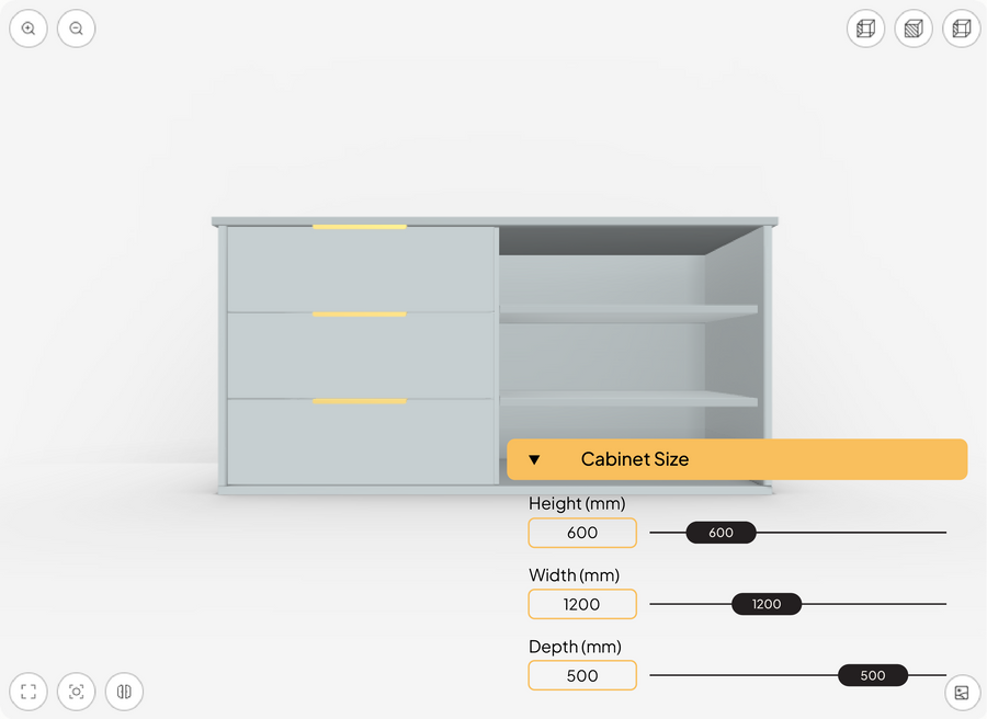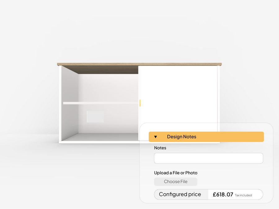 Use our configurator to adjust size, materials, shelves, and layout — while seeing your cabinet come to life with live pricing.