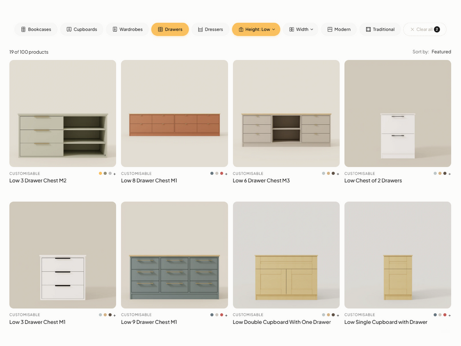 Start by browsing our cabinet collections. Each product acts as a flexible starting point that can be fully customised to suit your space.