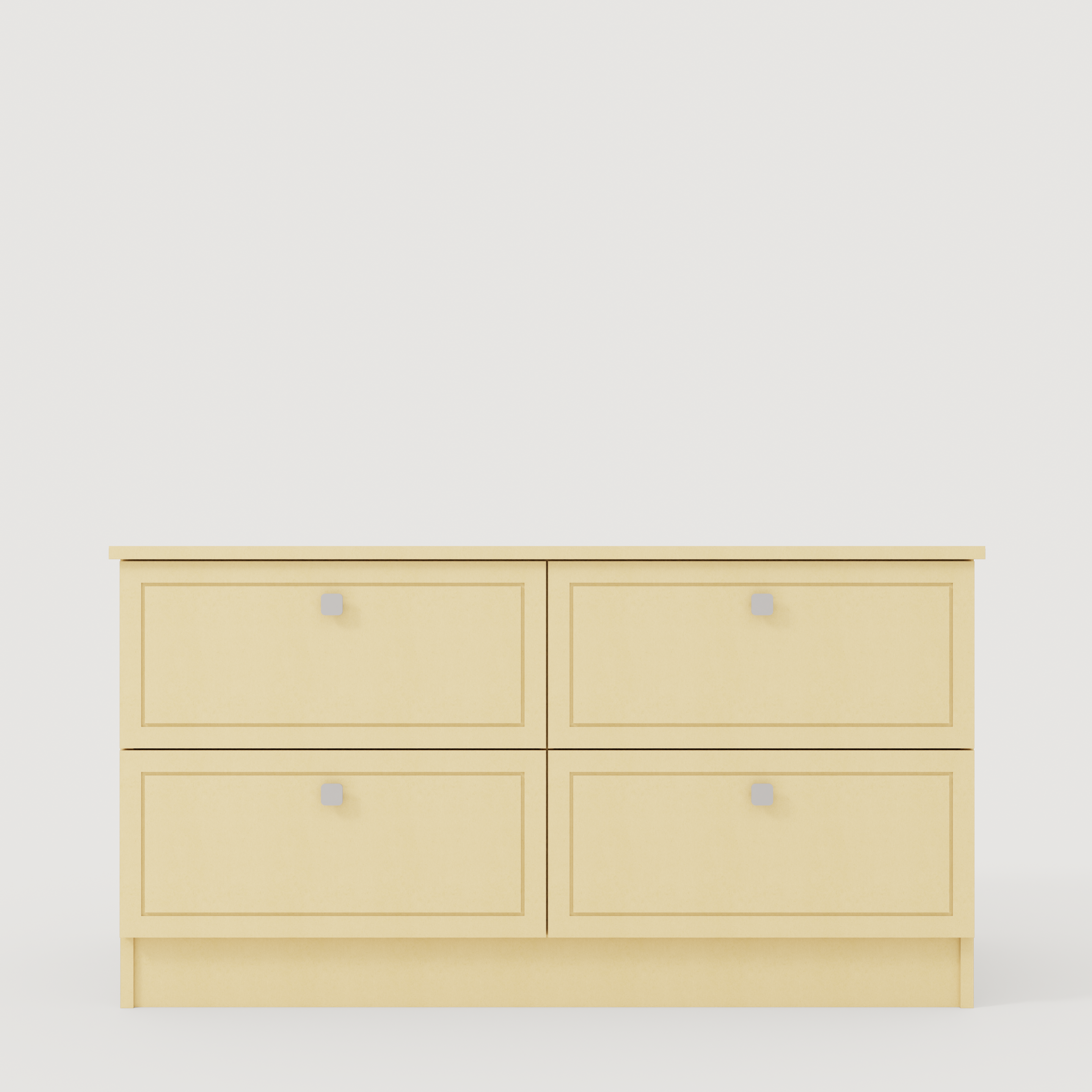 The Low Chest of 4 Drawers features a practical 2x2 layout designed for compact yet organised storage. Fully customisable in height, width and depth, it adapts precisely to your interior layout.