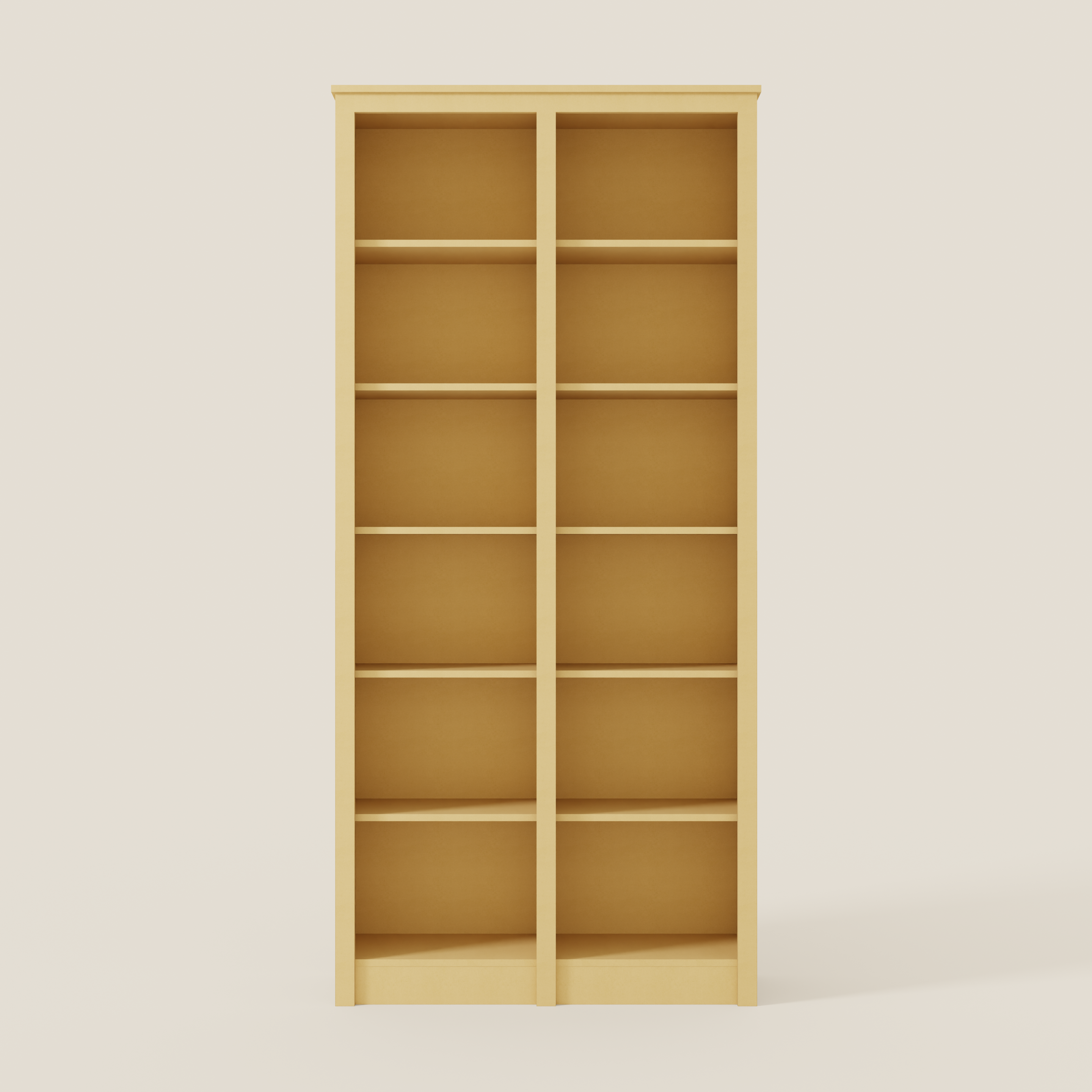 The Tall Double Bookcase is a made-to-measure shelving solution designed for fitted, built-in or freestanding use. Fully customisable in height, width and depth, it can be configured precisely to suit alcoves, full wall layouts or integrated storage schemes.
